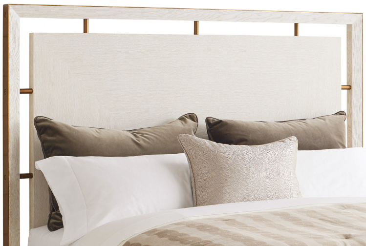 The Post Ranch panel headboard features a mitered veneer pattern with decorative metal spacers that give it the appearance of floating inside a perimeter frame that is trimmed with metal banding. For proper support, be sure to include our deluxe metal frame 001-750.Read More