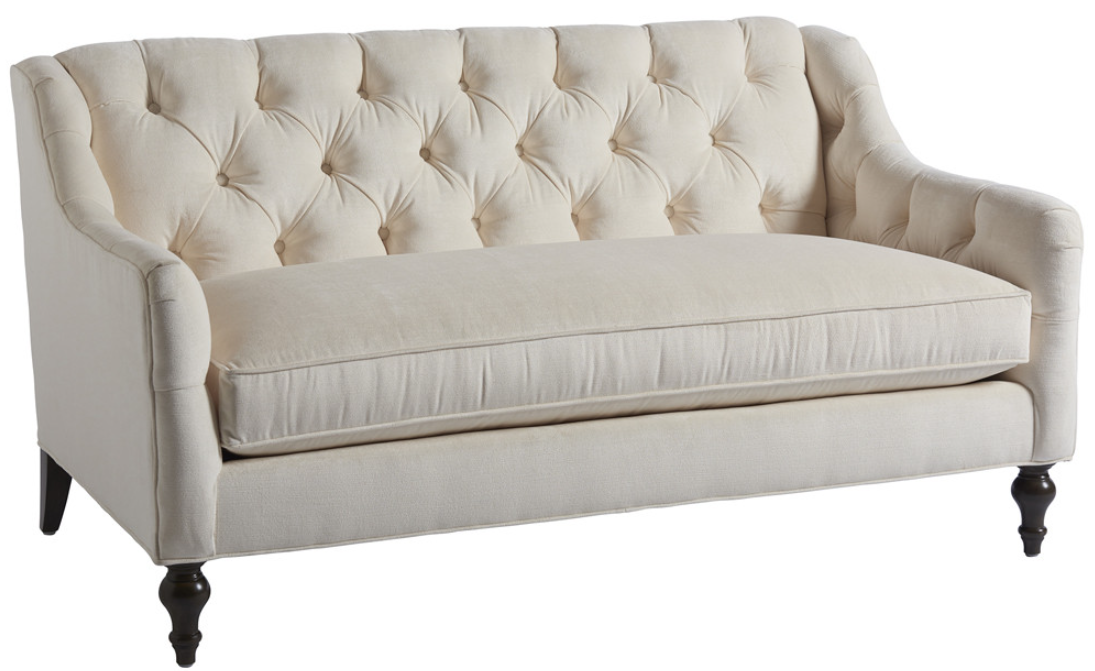 The Hyland Park settee is one of Barclay Butera's favorites and he has it placed at the foot of his bed in his home. A transitional English Arm design is juxtaposed with traditional deep button tufting on the inside back and arms for an elegant look.Read More