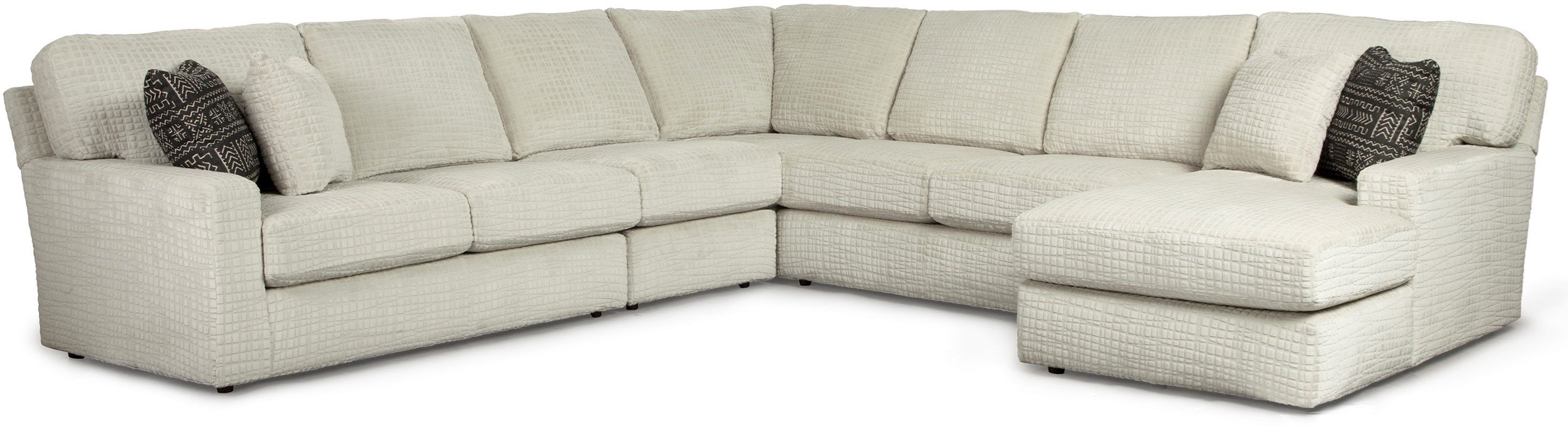 The Dovely Collection is a contemporary styled sectional group, featuring loose back cushions and reversible seat cushions. Large track styled arms provide a modern feel, while the generous size of the Dovely sectional and premium cushioning provide the ultimate in comfort. Pick from seven different pieces to customize your sectional, which provide countless configurations to fit your home. Two pillows come standard with armed units. As an added bonus, a USB charger is included with any armed unit as well! Available in over 700 fabric options.