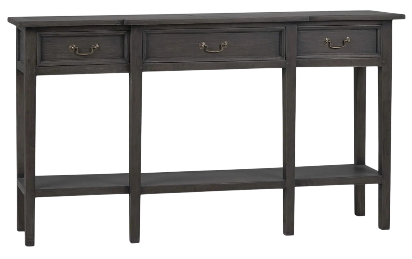 Clean, precise design is the hallmark of the Amherst narrow console table. Delicate legs accent three drawers and a lower shelf that bring display and storage space to this mahogany table. This piece is offered with a vast array of finish and distress options to create a truly custom design.Read More