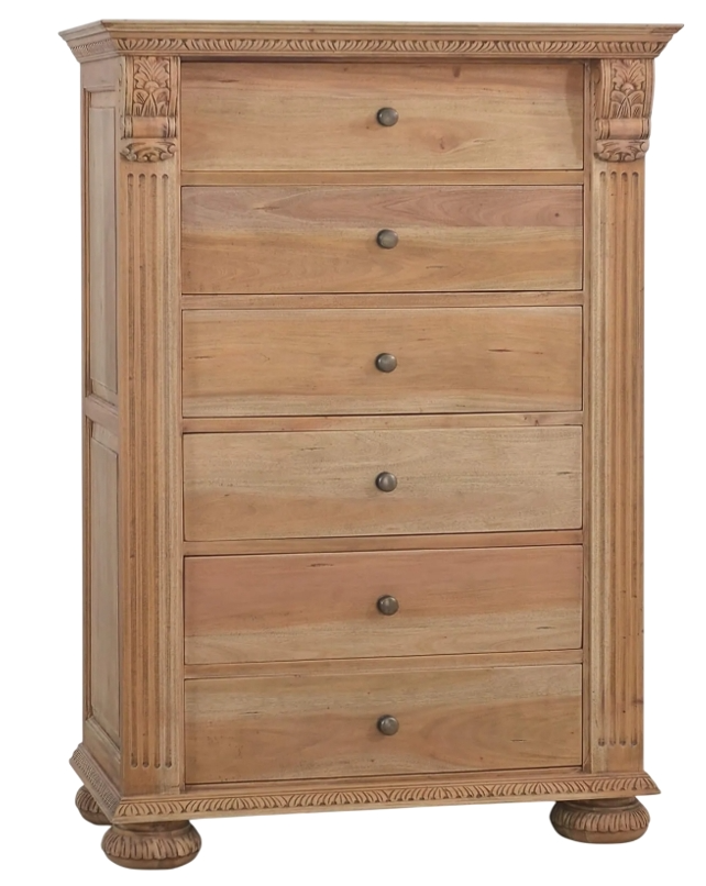 Handsome and statuesque, the Charleston Tall Boy Dresser offers plenty of storage space as it delivers a sophisticated and elegant look in a master or guest suite. Solid mahogany construction looks fantastic and feels sturdy, enhanced by quaint detailing.Read More