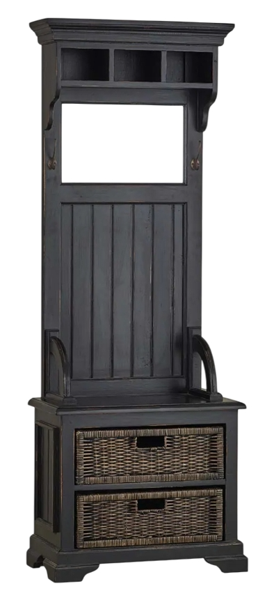Add functionality and classic style with the Homestead Narrow Hallstand with Rattan Baskets. Adding storage, this stand includes a mirror and seat, with cubbies and hooks complementing mahogany construction. This piece is offered with a vast array of finish and distress options to create a truly custom design.Read More