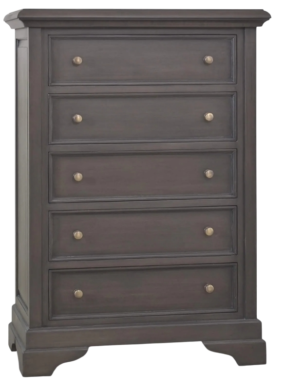 Handsome in the bedroom, the Huntley 5-Drawer Chest is a fabulous addition in classic or traditional decor. Crafted in solid mahogany, this stylish dresser shows off clean, classic lines with curvy detailing in its feet. This piece is offered with a vast array of finish and distress options to create truly custom design.Read More