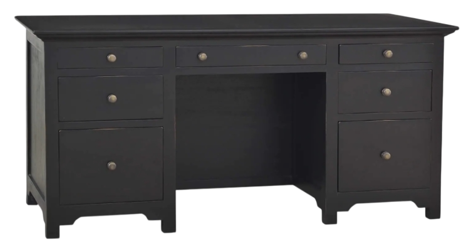 Adding plentiful storage and organization space to the den or home office, the Library Desk is classic and eminently useful. Built in solid mahogany, this desk offering dovetail drawers in the center and on both sides. This piece is offered with a vast array of finish and distress options to create a truly custom design.Read More