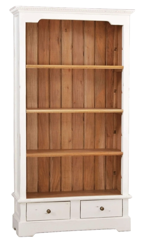 Appreciate the addition of a pair of drawers to the Manchester Bookcase. Optimally designed for organization in the living area, bedroom, or home office, this bookcase features beautiful solid mahogany wood construction with hand-carved trim. This piece is offered with a vast array of finish and distress options to create a truly custom design.Read More
