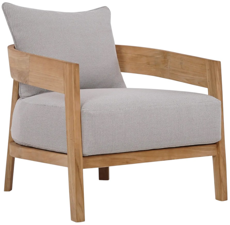 Modern outdoor occasional chair built from solid teak wood with exceptionally wide dimensions. The teak wood is kiln-dried to avoid mold, mildew, and cracking, making it the perfect material for outdoor use, requiring minimal maintenance. The hard-wearing cover fabric is removable and washable.Read More