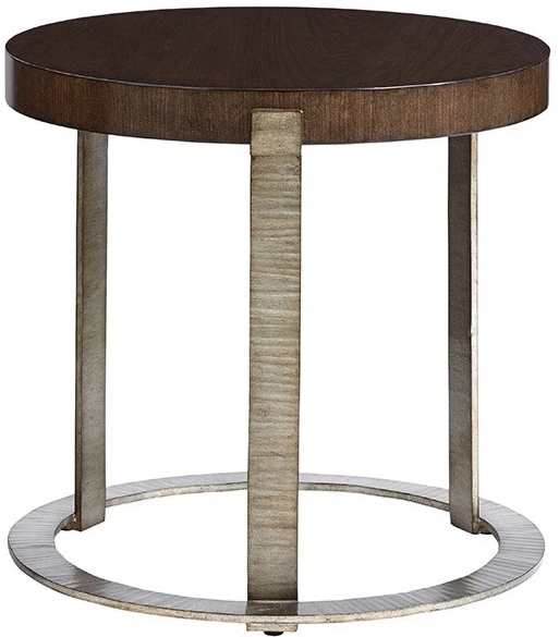 A handsome mahogany inset wood top is supported by a distinctive textured metal base creating a designer look. The metal base is hand-forged in authentic silver leaf and finished with rich hand-burnishings. While the design is artistically minimal, its craftsmanship is superior and deserves recognition.Read More