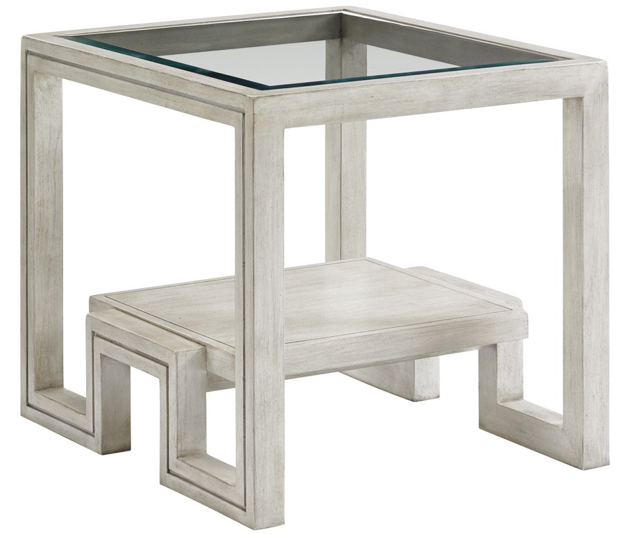 A floating shelf beneath a beveled glass top creates an open and inviting look. Featuring a sleek square design and a soft gray finish, it’s crafted from durable materials for lasting quality. Perfect for holding lamps, books, or decor, this versatile piece adds a chic and refined touch to any room.Read More