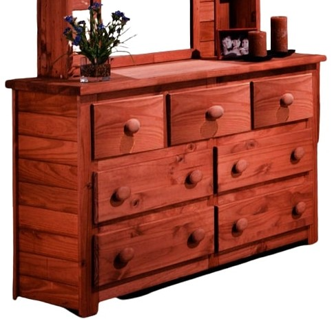 Made from solid pine, this mahogany dresser has 7 drawers that creates ample storage space for your essential items. Incorporate this dresser into your bedroom decor to give your home an eye-catching update.Read More