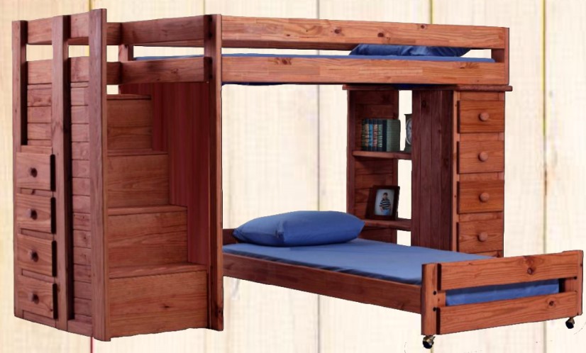 You will love this Twin over Twin Staircase Loft Bed from Pine Crafter Furniture. Shown in a Mahogany finish, this piece is perfect for small space living and will definitely add style to your bedroom.Read More