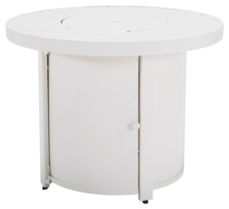 Add cottage-quaint charm to your outdoor oasis with this slatted fire pit table in white. It's crafted from durable, weather-resistant aluminum for years of enjoyment. The stainless steel burner conveniently ignites at the push of a button. It includes a burner cover that converts the fire pit into a coffee table, making it perfect for a variety of occasions.Read More