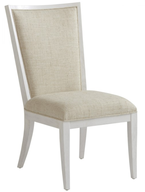Comfort is the feature with a flared concave design. The upholstered seat, inside and outside back are standard in 221311 sanibel, a stain-resistant performance fabric, with the look and hand of natural woven linen, in a sandy white coloration. Custom fabrics, leathers, or a combination are available as 570-882.Read More