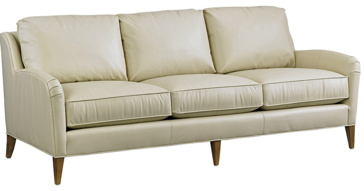 Graceful lines and saber legs blend to create a transitional silhouette. The sofa's ultra down seat cushions and blend down back cushions provide unparalleled comfort. Customize the piece by applying any leather of your choosing.Read More