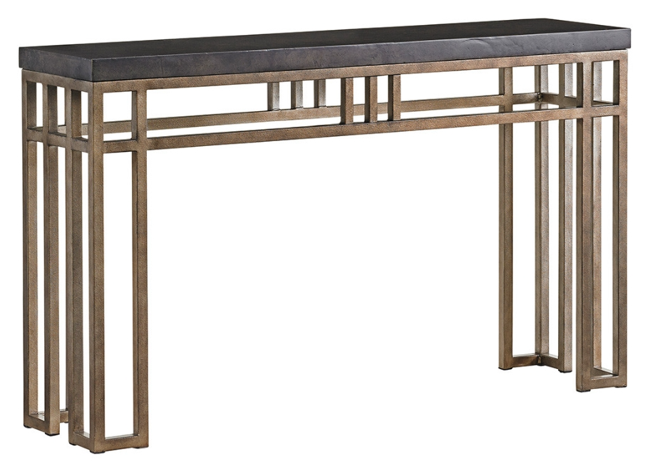 Simply elegant, this textured metal base is a statement piece and its stained travertine top will add flair to any decorative arrangement, artwork, or accent mirror. The metal is textured in the finishing process creating visual interest and depth. The burnt sienna finish complements the stained travertine top and is ideal for sophisticated casual environments.Read More