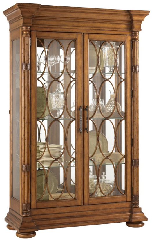The decorative bamboo fretwork on the two glass doors causes one to pause and appreciate the strength and flexibility of nature. Yet the display options are enticing as well with six adjustable glass shelves, mirrored back, and lighted interior.Read More