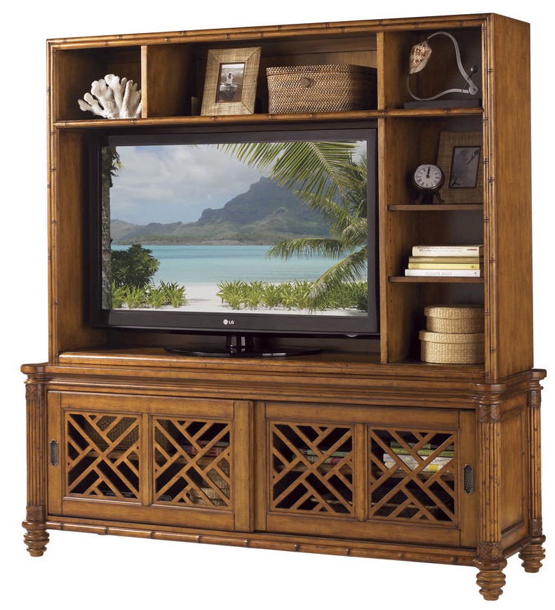 The refined Caribbean styling of Island Estate is infused with a rich blending of natural materials like woven Abaca and Lampakanai, Coco shell, Penn shell, leather-wrapped bamboo, and woven rattan. The rich Plantation finish blends effortlessly with the Noche Black, Cilantro Green, and Sangria Red accent finishes, while signature island fabrics draw the outdoors in. Capture the essence of sophisticated island living with Island Estate from Tommy Bahama Home - a relaxed approach to the finer things in life.