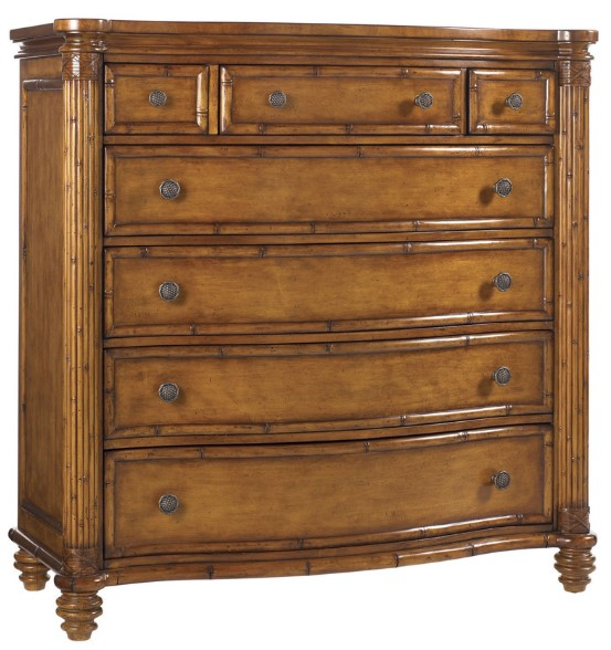 Island inspired, square footage in mind, this seven drawer chest is ideal for wardrobe storage and the top center drawer is felt lined with a removable jewelry tray to organize and protect valuable treasures...and keep them out of sight.Read More