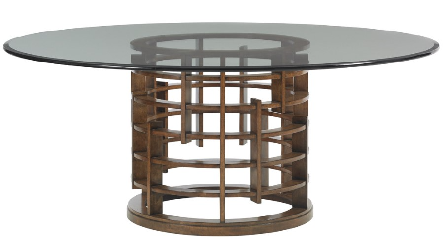 The Asian inspired fretwork on the base reflects the balance of linear movement throughout the collection. By pairing with the 72-inch diameter glass top, you can maximize your seating to 6 people while ensuring an intimate dining experience.Read More