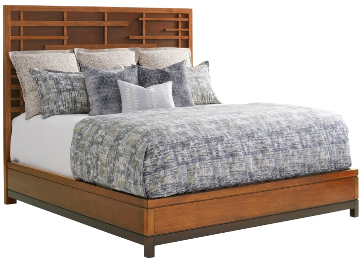 Elegant Pan-Asian fretwork on the headboard is highlighted by a contrasting dark walnut back panel. The side rails and feet also offer accents in the dark walnut finish. The bed is available as shown or as a headboard only.Read More