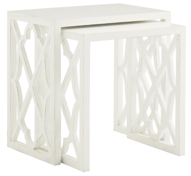 The Ivory Key Stovell Ferry Nesting Tables embody coastal sophistication and versatility. Crafted with open lattice side panels and solid tops, these tables feature a quatrefoil diamond design that adds a touch of island charm to any room.Read More