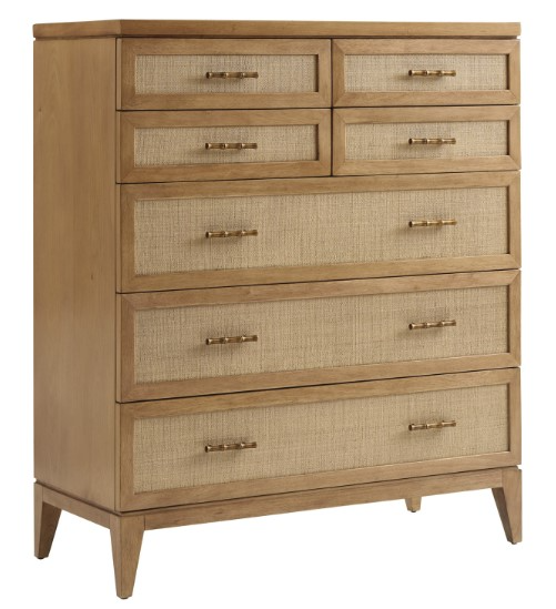 The Seagrove chest features seven drawers with woven raffia front panels, side-hung drawer guides and tapered legs. With a beautifully crafted brown finish, it offers generous storage with its spacious drawers. Its elegant design and durable construction enhance both functionality and aesthetic appeal.Read More