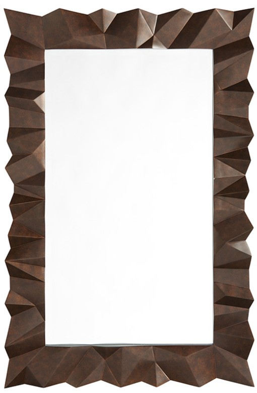 Varying angles and depths on the framed mirror reflects light and visual interest. The aged bronze finish complements the oak wood and encourages use as an accent in many areas of the home, hung vertically or horizontally.Read More