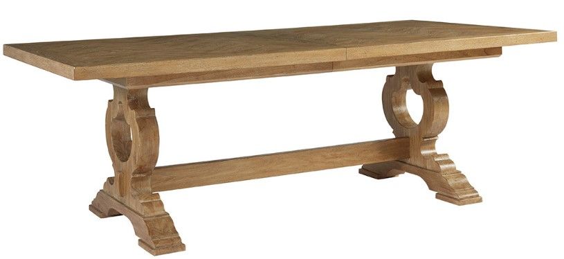The 88-inch trestle dining table is a perfect gathering place. The top features an elegant herringbone veneer pattern and with two leaves, the table extends to 132-inches, comfortably accommodating ten.Read More