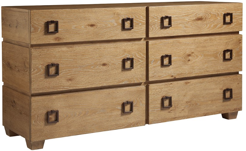 Showcasing distinctive square ring-pull hardware, the six full-extension, self-closing drawers provide ease of use and ample storage. The horizontal channel detail between the drawers wraps around the end panels finished with a sturdy, simple tapered block foot.Read More