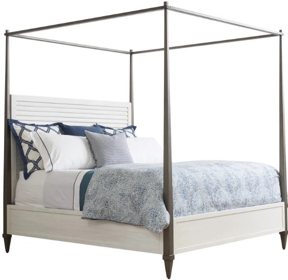 The Coral Gables poster bed makes a grand statement, blending a louvered headboard panel with tapered metal posts and removable canopy frame finished in aged pewter. This will add a charm to your bedroom.Read More