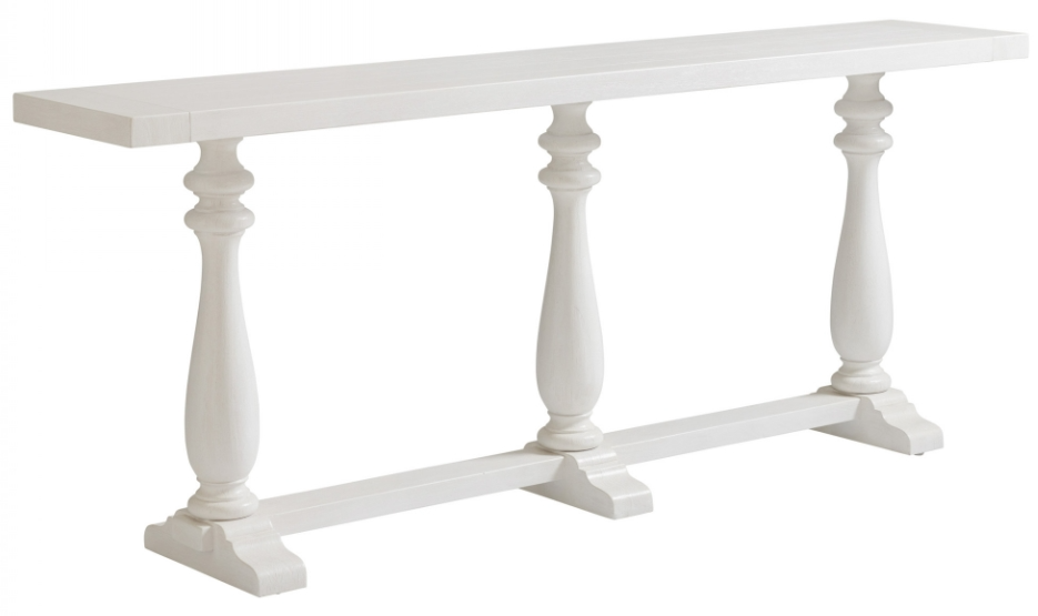 The 86-inch River Oaks console is a statement item for the entry hall, living room or dining room. It has a planked top design with decorative turned legs in the caribbean sands finish.Read More