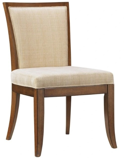 Standard upholstery for seat and back is woven taupe and cream fabric. Other fabric options are available, see store for details. Add this piece to make a bold statement to your dining area.Read More