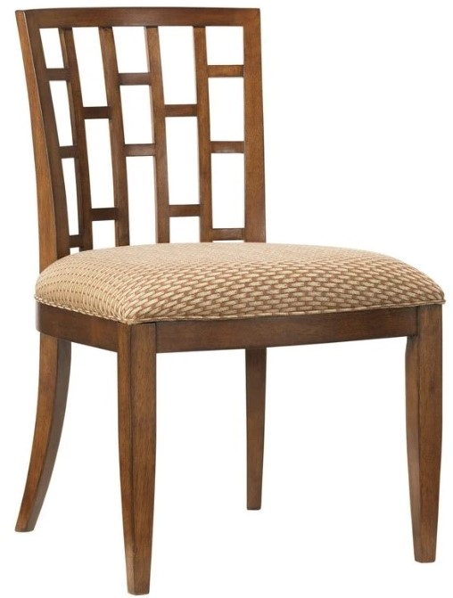 Standard upholstered seat is a tan and rust geometric pattern. Other fabrics options are available, see store for details. Make a bold statement by adding this piece to your dining area.Read More