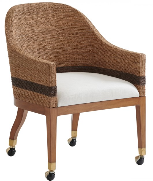 Casual contemporary designs crafted from quartered hickory veneers and select hardwoods in a sundrenched sierra tan finish. Concave back in twisted lampakanai rope with contrasting darker stripe at bottom. Brushed gold hooded casters.Read More