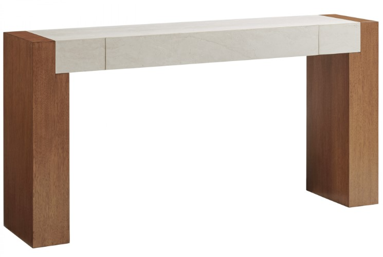 The 68-inch console pairs a wooden base with a veneered Anticato marble top. Unique to this design is the soft close center drawer that blends seamlessly with the top. Add this piece to make a bold statement to your living area.Read More