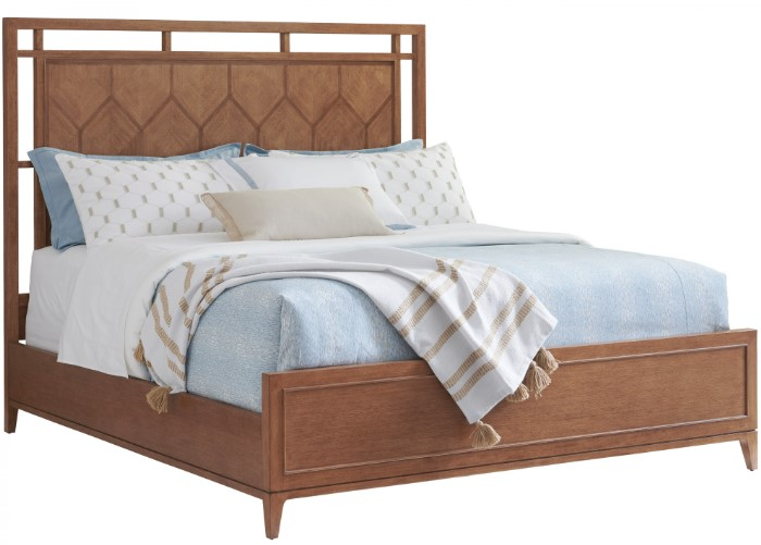 The Rancho Mirage bed by Palm Desert features a striking hexagonal veneer pattern on the headboard, framed by an open architectural design around the perimeter. This piece will make a bold statement to your bedroom.Read More