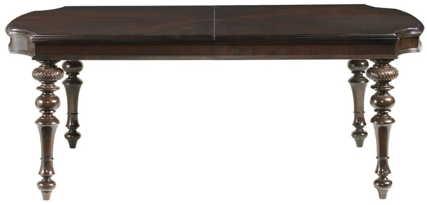 Distinctive British Colonial designs are evidenced on the carved mahogany dining table. The additional two leaves allow comfortable seating for ten. This piece will make a bold statement to your dining area.Read More