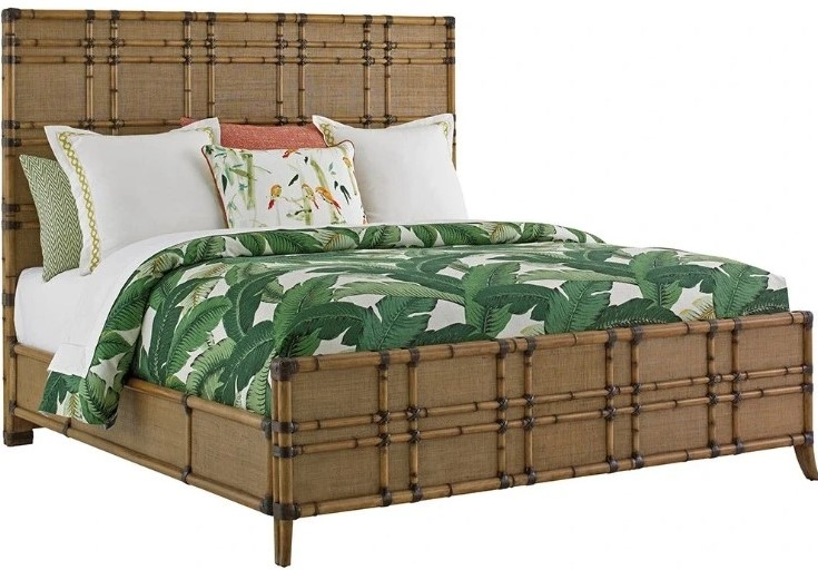 Setting a serene tone, the panel bed features leather-wrapped bamboo carvings on the headboard, footboard and side rails highlighting the beauty of the woven raffia panels. The bed is also available as a headboard only.Read More