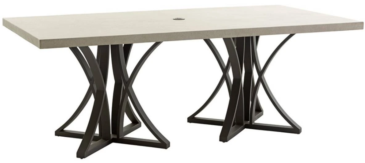 Enjoy outdoor dining for six with your choice of stationary or swivel rocker chairs around the rectangular table. The weather stone top has the look of honed limestone, with exceptional durability.Read More