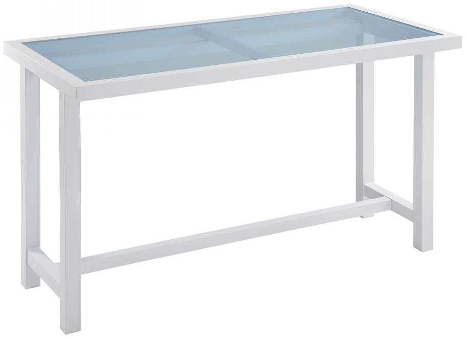 Inset tempered glass top in a soft marine blue coloration