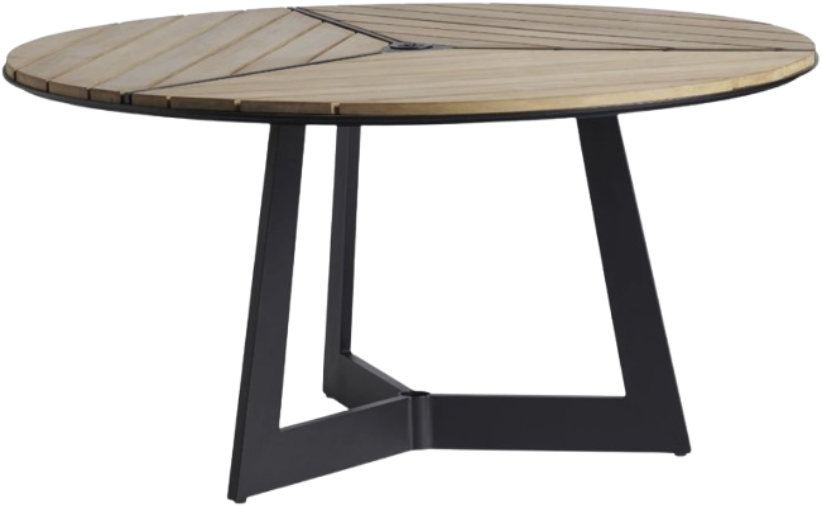 The Tommy Bahama® Outdoor South Beach Dining Table has geometric layout of the teak-planked top mirrors the aluminum base, separated into three sections, with an umbrella pass-thru in the center. The indigenous color of teak is light brown. With age, the patina turns to an elegant silver tone.Read More
